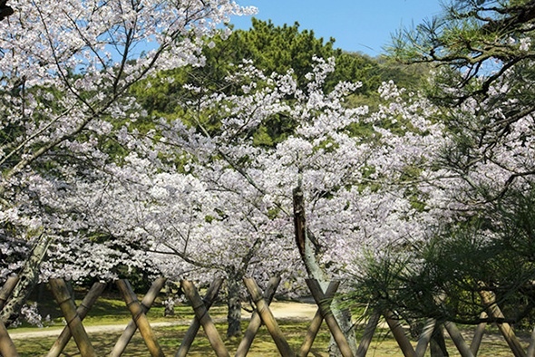 在日本所有被指定為文化財產的庭園之中規模最大。